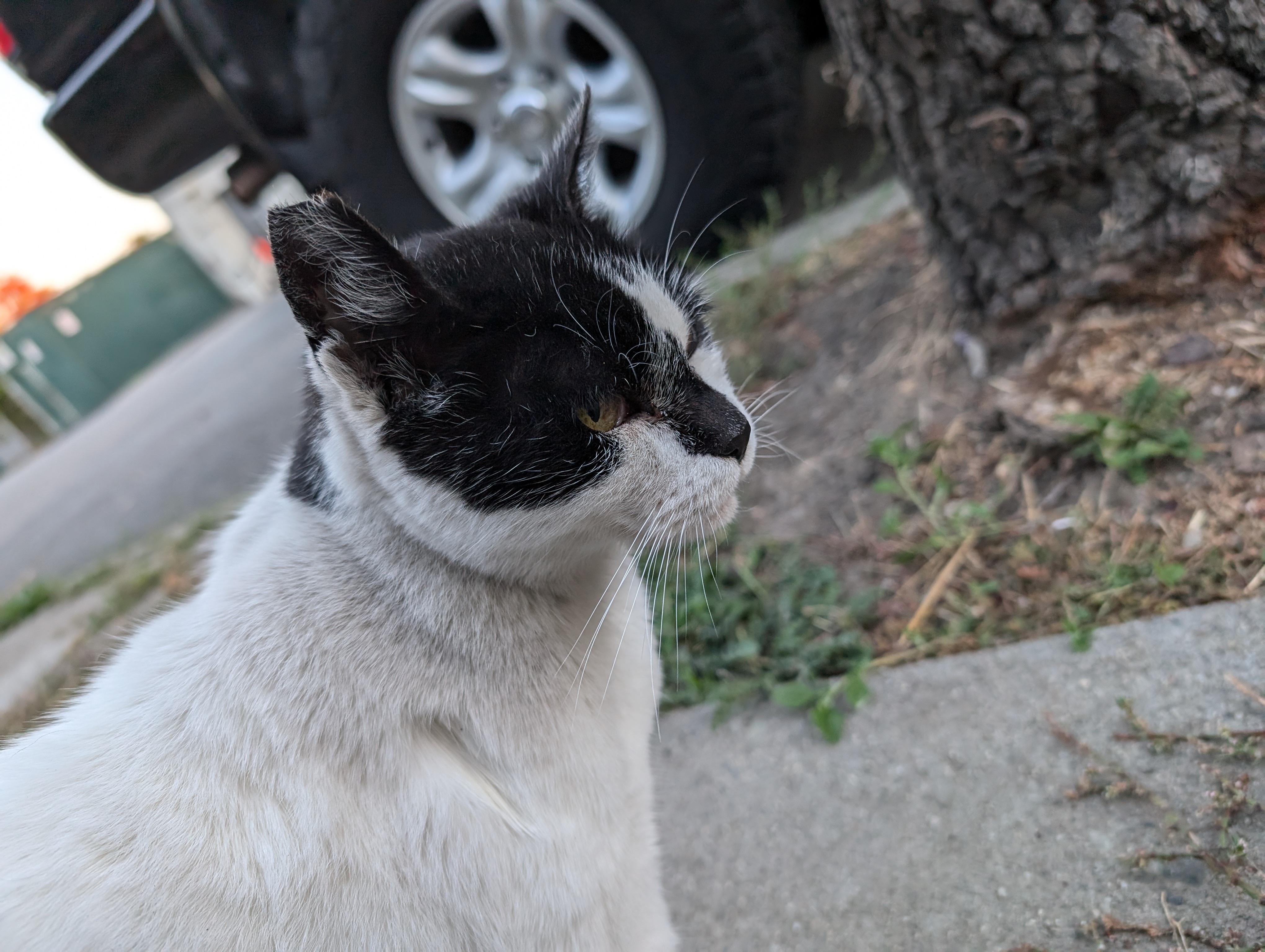 I've been walking to work more often, and just walking around my neighborhood more because of that. When I'm lucky I get to see some of the neighborhood cats.